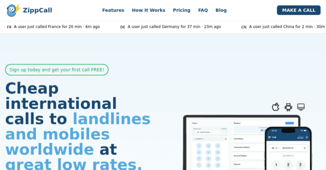With ZippCall, you can connect instantly to any phone number worldwide. The platform supports calls to both landlines and mobile phones in over 200 countries.