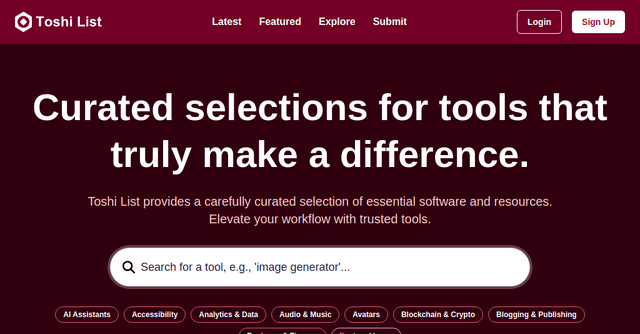 - Expertly Curated Selection: Toshi List's team of experts hand-picks each tool, ensuring they meet high standards of functionality and user experience.