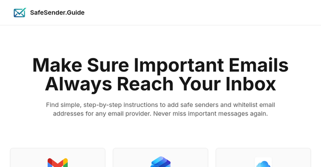 SafeSender.Guide is your go-to online resource offering simple, step-by-step instructions to add safe senders and whitelist email addresses across any email provider. The platform is designed to ensure that you never miss out on important messages again, bolstering both personal and professional communication channels.