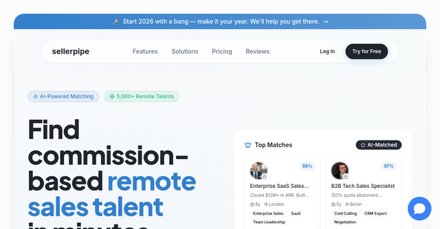 Unlock the power of commission-based remote sales talent and propel your business forward with SellerPipe. Explore the platform, connect with top sales professionals, and achieve your sales goals like never before. Visit SellerPipe to learn more and start your journey to sales success.