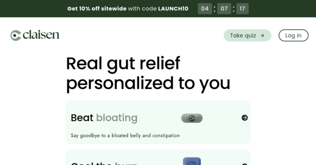 Don’t let bloating, heartburn, or gas hold you back any longer. Visit Claisen to take the personalized quiz and embark on your journey to real relief. With Claisen, a life free of GI discomfort is not just possible—it’s within reach.