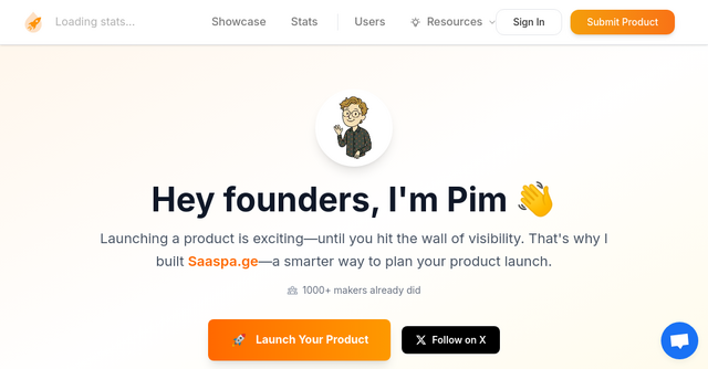 Hey founders, I'm Pim 👋. Launching a tech product is an exhilarating journey, filled with innovation, hard work, and dreams of making a significant impact. However, amidst the excitement lies a daunting challenge – gaining visibility in a saturated market. Recognizing this critical hurdle, I created Saaspa.ge, a platform designed to revolutionize the way tech products are launched. Today, I’m here to guide you through how Saaspa.ge can be your launchpad to success, ensuring your product doesn’t just go live but thrives.