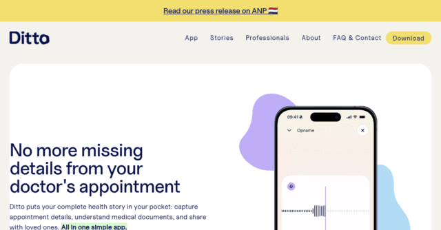 At Ditto Care, we recognize the challenges patients face in managing their health information. Our mission is to provide a solution that empowers individuals by making healthcare understandable. With Ditto, you can record conversations with your doctor, get explanations for medical letters, and share everything easily with your family. All of these features are available in one free app, making Ditto your go-to healthcare companion.