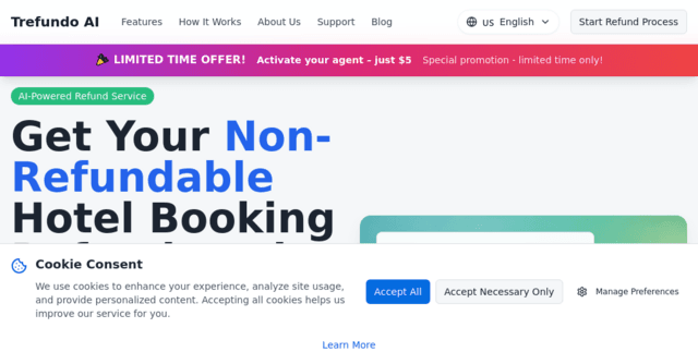 Trefundo AI is an innovative service designed to help travelers refund their non-refundable hotel bookings. In a world where flexibility is key, Trefundo AI offers a much-needed solution to a common problem faced by many travelers. With its user-friendly platform and cutting-edge technology, getting your money back has never been easier.