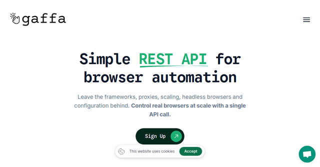 Gaffa is not just another tool in the browser automation space; it's a game-changer. Designed to make your web automation projects as seamless as possible, Gaffa allows you to automate real browsers in minutes, without the need to worry about scaling, proxies, or the quirks of headless browsers. It's an all-in-one solution that provides the ease of use and scalability required for today's data-heavy applications.
