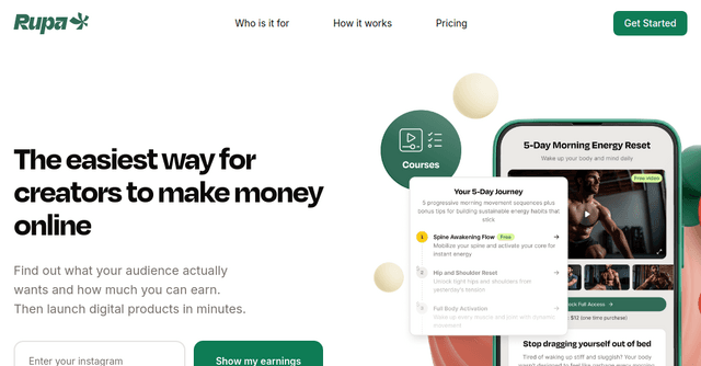 Imagine you're a fitness coach with a decent Instagram following. With Rupa, you could quickly launch a 30-day challenge, complete with daily workouts, nutrition guides, and motivational emails. Or perhaps you're a graphic designer. Rupa can help you sell templates, guides, or even one-on-one coaching sessions. The possibilities are endless, and Rupa makes them easy to achieve.