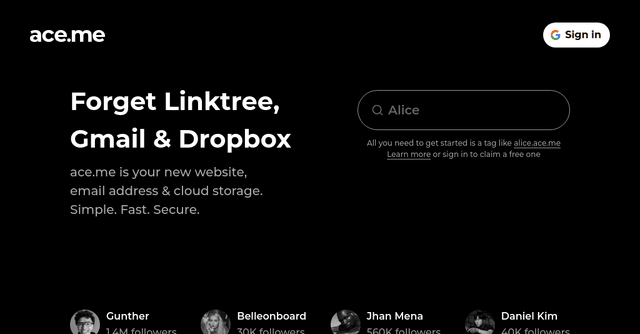 Gone are the days of juggling multiple platforms like Linktree for your links, Gmail for your emails, and Dropbox for your storage. Ace.me brings everything under one roof, providing a seamless experience that's not just user-friendly but also incredibly efficient. With endorsements from influencers like Gunther with 1.4M followers and Jhan Mena boasting 560K followers, it's clear that ace.me is making waves across the digital landscape.