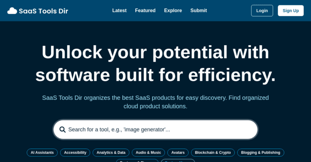 Navigating the vast sea of SaaS products available today can be overwhelming. That's where SaaS Tools Dir shines. It takes away the guesswork by categorizing top-tier SaaS products into easily navigable sections. From AI Assistants to Analytics & Data, and from Blockchain & Crypto to Business & Finance, finding the right tool for your needs has never been simpler.