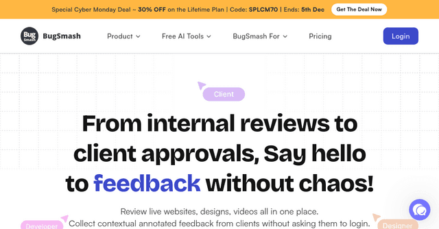 BugSmash is not just another tool in the market; it's a solution designed to tackle the complexities and inefficiencies of the collaboration process head-on. With BugSmash, you can review live websites, designs, videos, and more, all in one place. It allows for collecting contextual, annotated feedback from clients without requiring them to log in, thereby eliminating the need for back-and-forth communication through emails or messages. Let's dive deeper into how BugSmash stands out and why it's loved by 450+ brands worldwide.