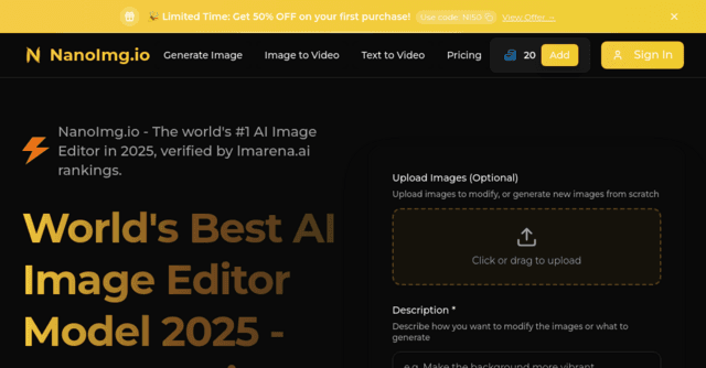 In an era where digital content rules, the power of a compelling image cannot be overstated. Whether it's for marketing, entertainment, or personal projects, the need for high-quality, captivating visuals has never been more pressing. Enter NanoImg.io, the pinnacle of AI image editing technology in 2025, a platform that has revolutionized the way we create and modify images. Dubbed the world's best AI Image Editor and ranked #1 by lmarena.ai, NanoImg.io is not just a tool but a gateway to unleashing unparalleled creativity. Let's dive into what makes NanoImg.io stand out in the crowded field of image editing.